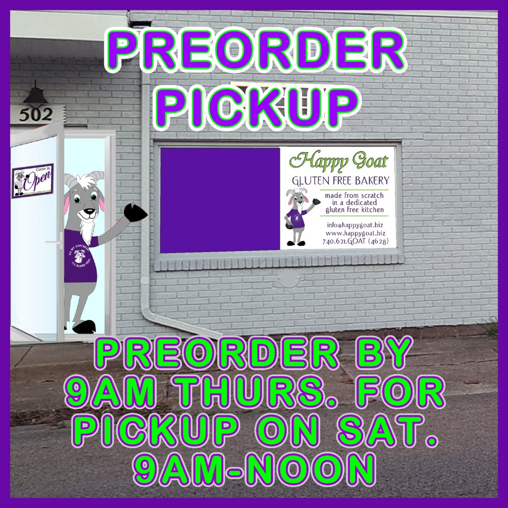 Although a lot of of our menu items rotate through the weekly menu, not every item is always available. Special orders have a minimum quantity of 6-12 pieces. Cakes & pies avail in sizes listed. One week preferred for special orders. All special orders must be placed at least one week in advance. Any special requests such as icing colors, sprinkles, or custom cakes you may pre-order by contacting us at info@happygoat.biz